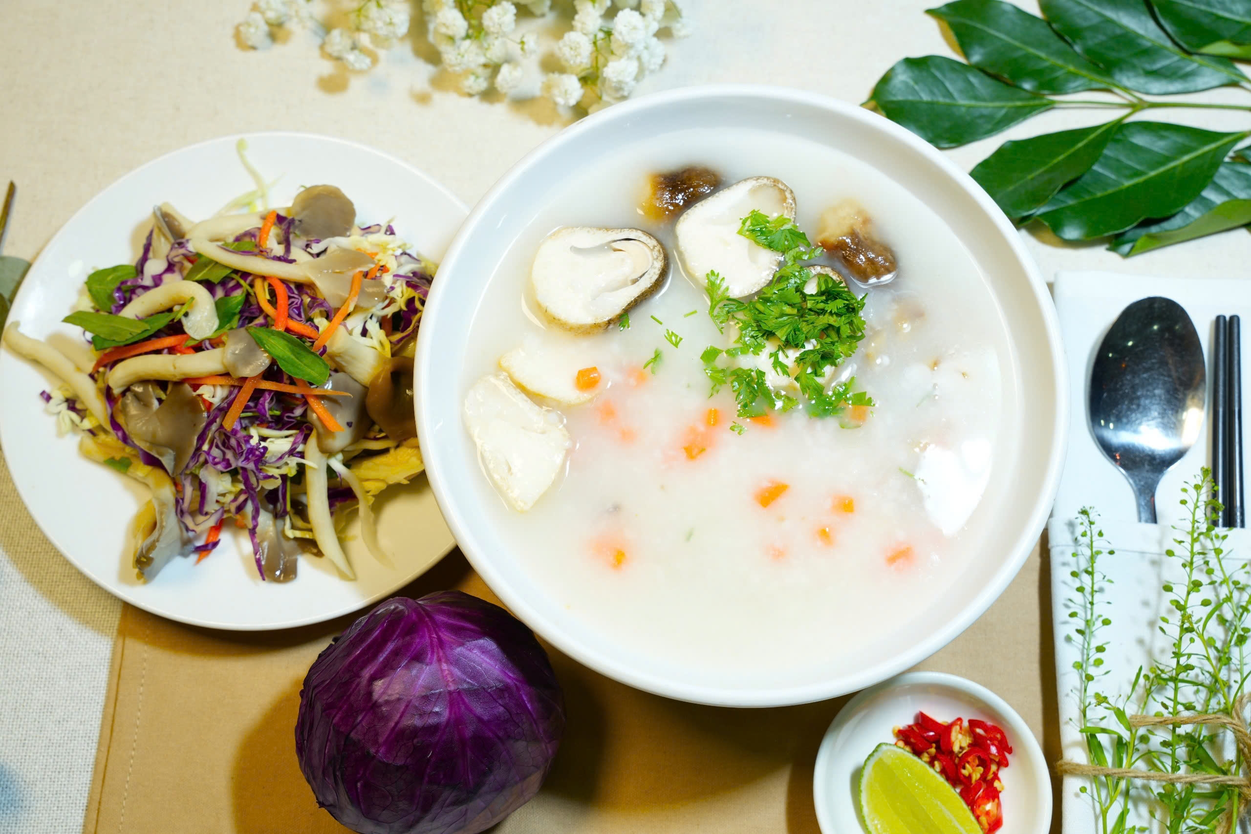 Cháo nấm gỏi