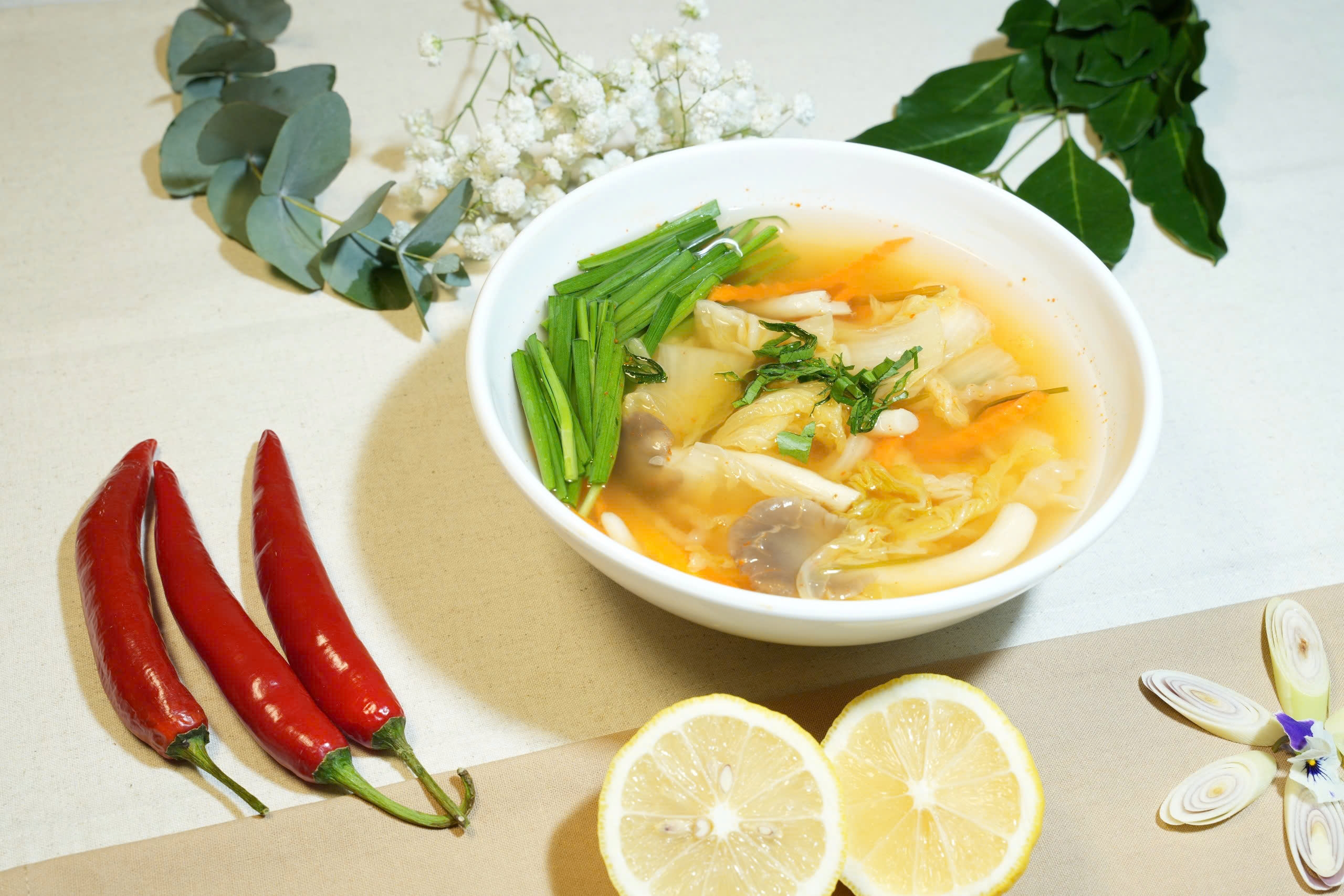 Canh nấm kim chi